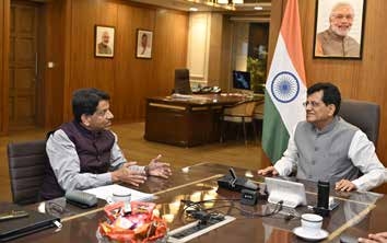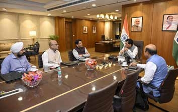 Shri Piyush Goyal, Hon’ble Minister of Commerce and Industry, Government of India ( at the head of the table) and Shri Rajesh Agrawal, Special Secretary, Department of Commerce, Ministry of Commerce and Industry (far right) had a meeting with EEPC India Senior Officials - Shri Pankaj Chadha, Chairman (to the left of Shri Goyal) Executive Director & Secretary, Shri Adhip Mitra (2nd from left) and Senior Director, Shri Gurvinder Singh (far left) at Vanijya Bhavan, New Delhi.