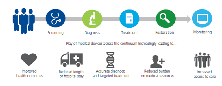The medical devices sector has also grown considerably during this period and plays a critical role at each stage of the healthcare continuum. The Government of India’s ‘Make in India’ initiative presents a platform for the sector to revisit the operating model, identify key imperatives for growth and explore possibilities for creating a step change in the medical devices sector. However, there is still a huge gap in the current demand and supply of medical devices in India, as India has an overall 70-80% import dependency on medical devices. At present, many medical device manufacturers (domestic and international) are chasing this massive under penetration of medical devices in India as a significant growth opportunity.