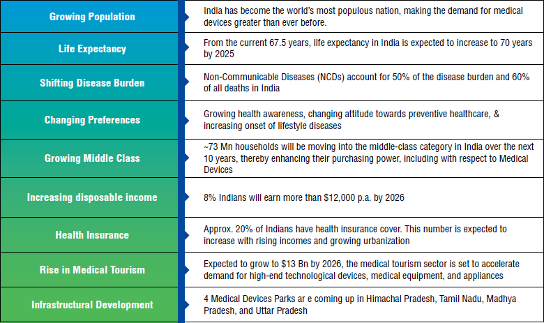 The Government of India has commenced various initiatives to strengthen the medical devices sector, with emphasis on research and development (R&D) and 100% FDI for medical devices to boost the market.