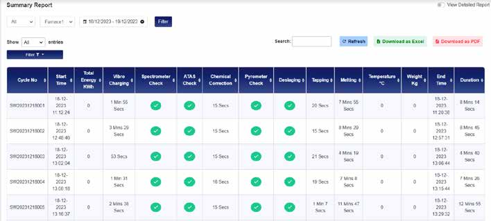 Implementation of AI system in melting operation is shown in Fig.2. All the operations of melting are tracked starting from charging scrap into furnace, temperature measurement, spectrometer sample checking and pouring along with real times associated with operations.