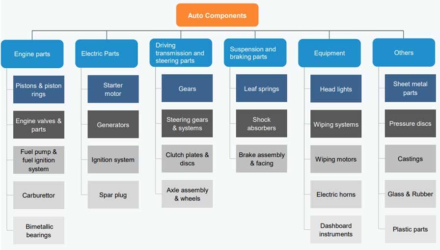 Various sub-sectors of the Auto components & parts industry in India are as follows: