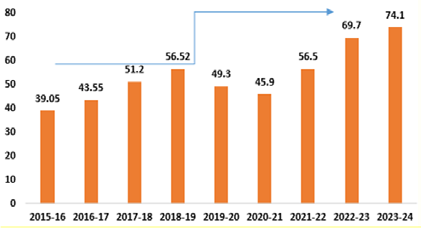 Under phase-II of FAME India Scheme, subsidy amounting to US$ 696.8 million (Rs. 5790 crores) has been awarded to EV manufacturers on sale of 13,41,459 number of electric vehicles till January 31, 2024.