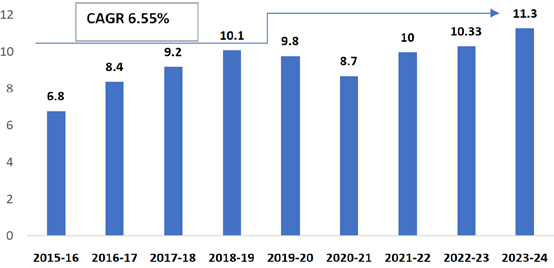 The Indian automotive industry has seen significant growth and is currently valued at over US$ 238 billion.. It contributes approximately 6.8% to India’s GDP and 14-15% to the GST. The industry is a major player in global markets, particularly in segments like Passenger Cars, Utility Vehicles, Vans and two Wheelers is expected to reach US$300 billion by 2026. The sector isalso expected to become the third largest in the world by 2030