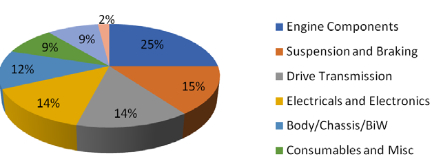 The auto component industry in India is composed of organized and unorganized sector. The organized sector refers to original equipment manufacturers (OEMs) and is engaged in the manufacture of high-value precision instruments. Whereas, the unorganized sectors comprise of low-valued products catering to after-market services. The growth of global original equipment manufacturers’ (OEM) sourcing from India & the increased indigenisation of global OEMs is turning India into a preferable designing and manufacturing base. This leads to 8% of India’s R&D expenditure getting invested in the automotive sector.